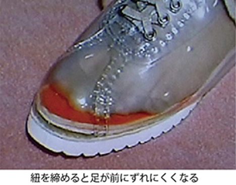 2. 甲周りをしっかり押さえてくれる靴にしましょう。紐靴は非常に安定性が増しますので足に無駄な力が入らず靴を軽く感じる事ができます。